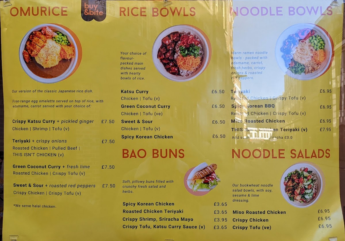 Introducing Buy & Bite, a delightful culinary gem located at 5A Cowcross St, London. This vibrant eatery offers an exciting menu that showcases an impressive fusion of flavors. Patrons rave about the eggcellent omurice, reminiscent of authentic Japanese dishes, and the spicy Korean chicken, perfect for those who enjoy a kick. The chicken katsu curry stands out as a must-try, praised for its generous portion and excellent value.
